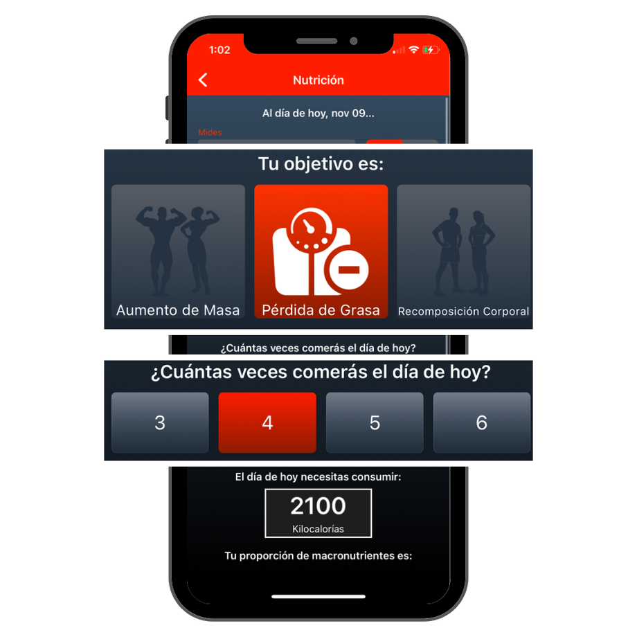 2. Por favor, selecciona un objetivo específico para tu plan de dieta, ya sea Aumento de Masa Muscular, Pérdida de Grasa, o Recomposición Corporal. Además, indica la cantidad de comidas que realizas diariamente.