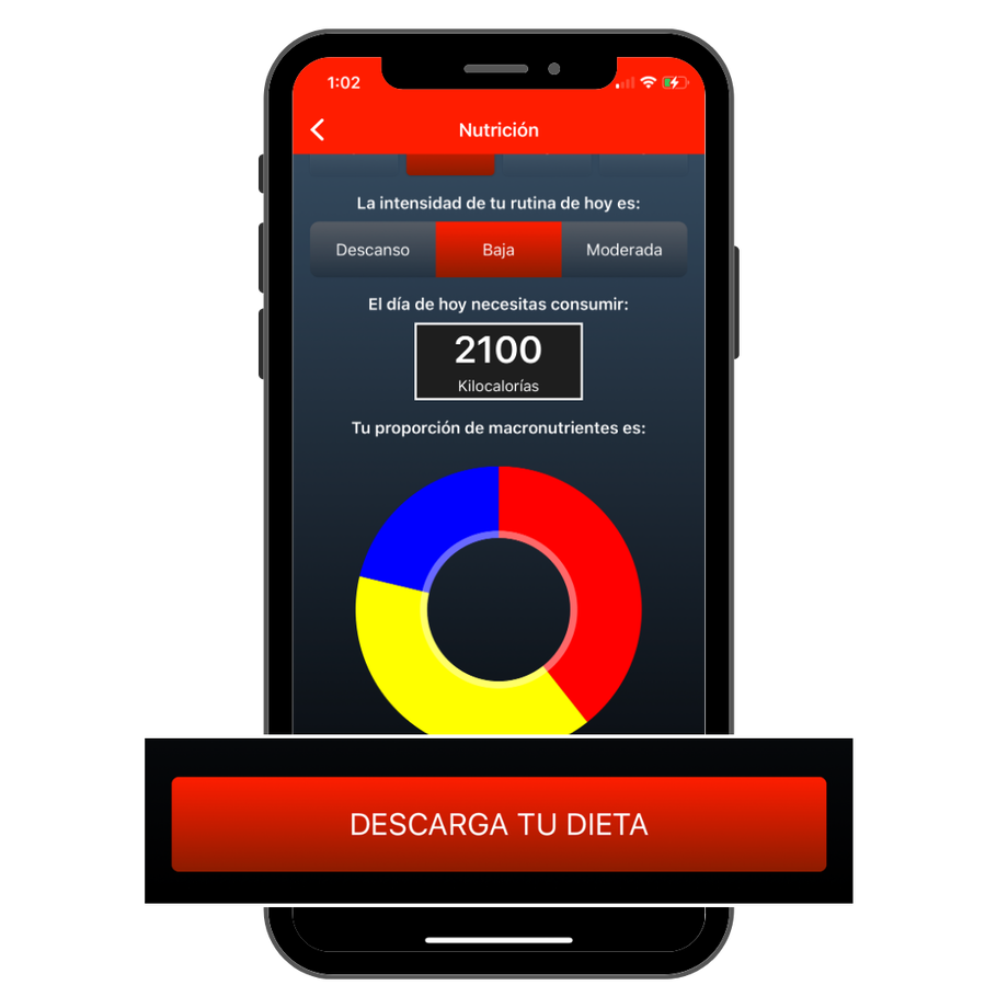 Puedes descargar tu dieta directamente desde la aplicación, y a continuación te detallo cómo hacerlo: