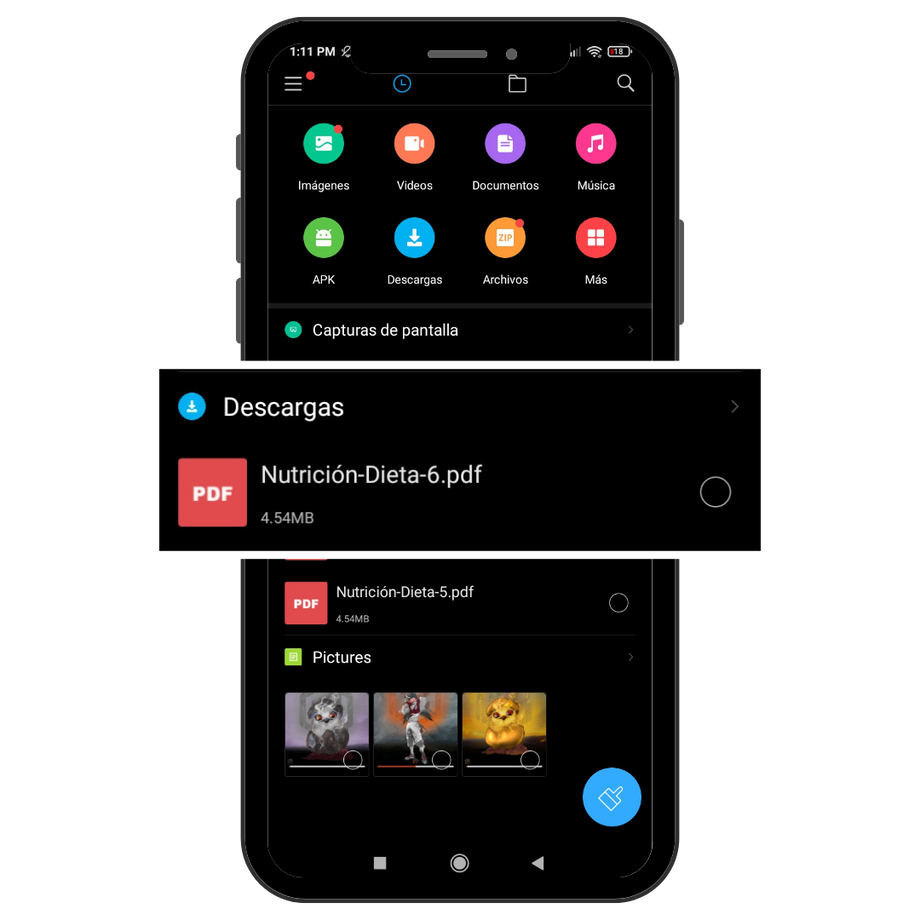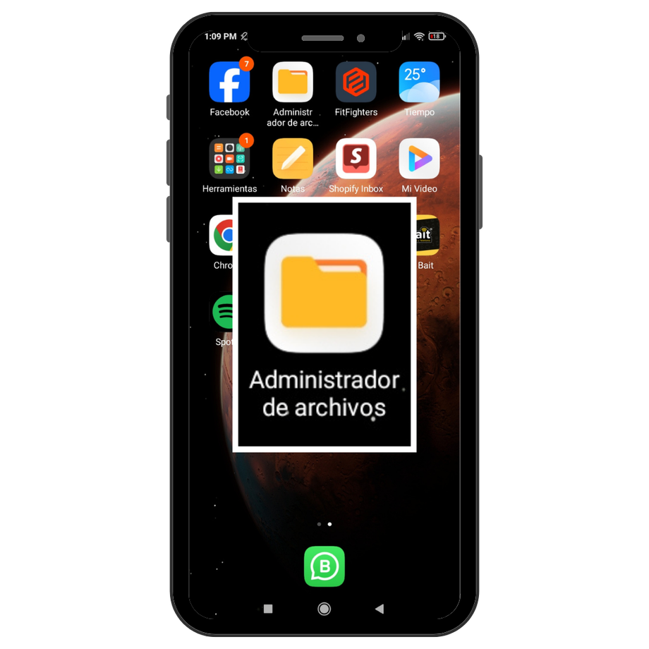 6. Para localizar tu archivo, por favor, abre la aplicación Administrador de Archivos en tu dispositivo móvil.