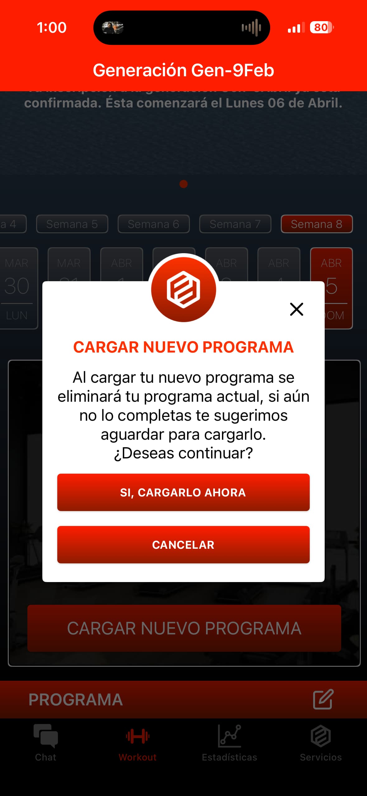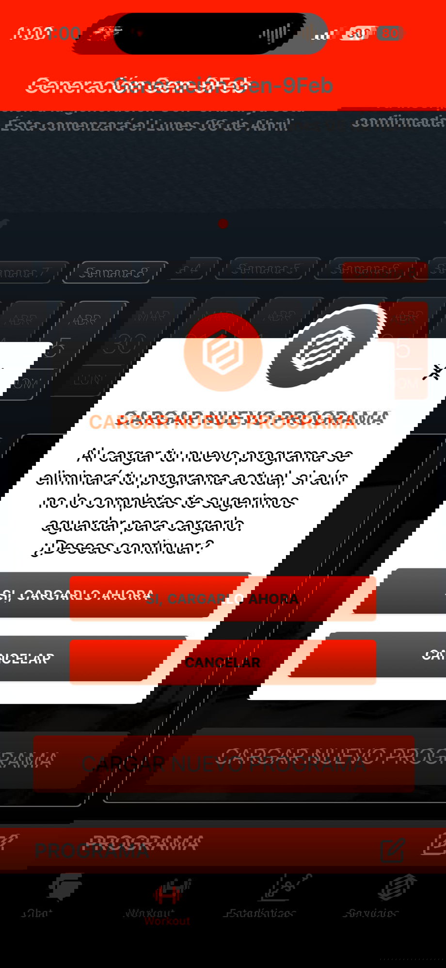 IMPORTANTE: Si aún tienes rutinas pendientes de tu plan actual, no presiones el botón todavía. Al hacerlo, tu plan actual se reemplazará por el nuevo y ya no podrás acceder a las rutinas anteriores.