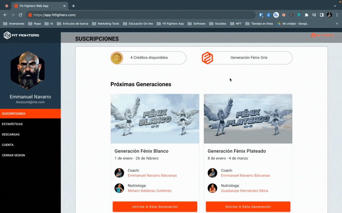 - Visita el sitio web app.fitfighters.com e inicia sesión con tu correo electrónico y contraseña.